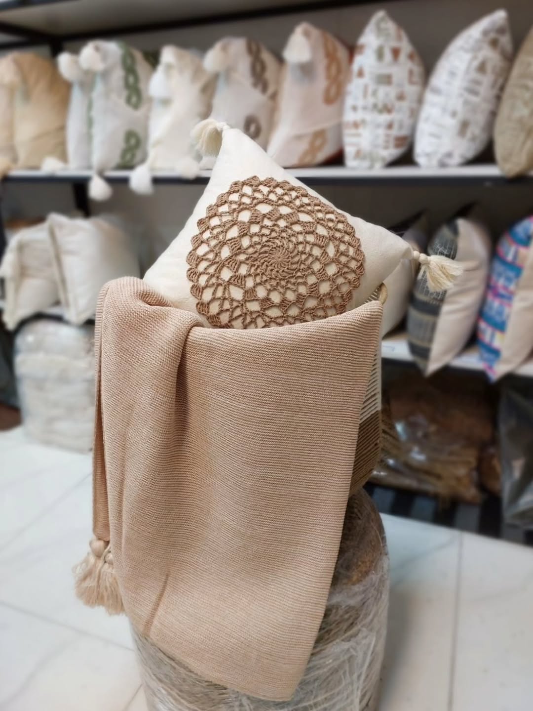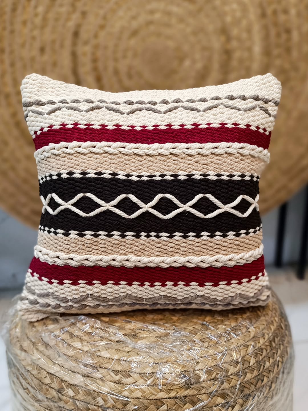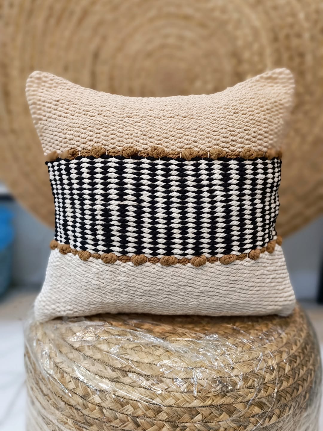 کوسن نچرال مدل راهراه مشکی و دوخت نقطهای